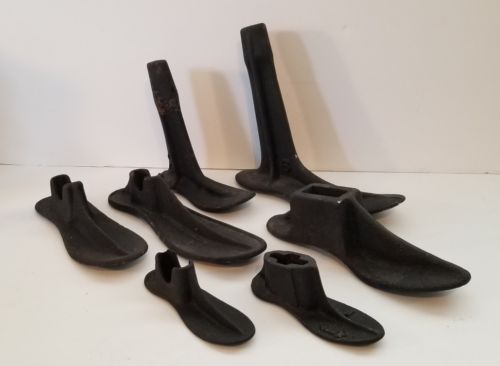 Title (ebay affiliate link): Lot of Antique Vintage Cast Iron Cobbler Shoemaker Shoe Anvil Form Lasts & Stand