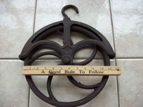 Title (ebay affiliate link): LARGE ANTIQUE CAST IRON WATER WELL PULLEY PRIMITIVE