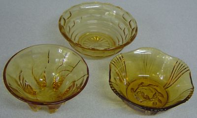 SMALL AMBER DEPRESSION GLASS BOWL DISH X 3
