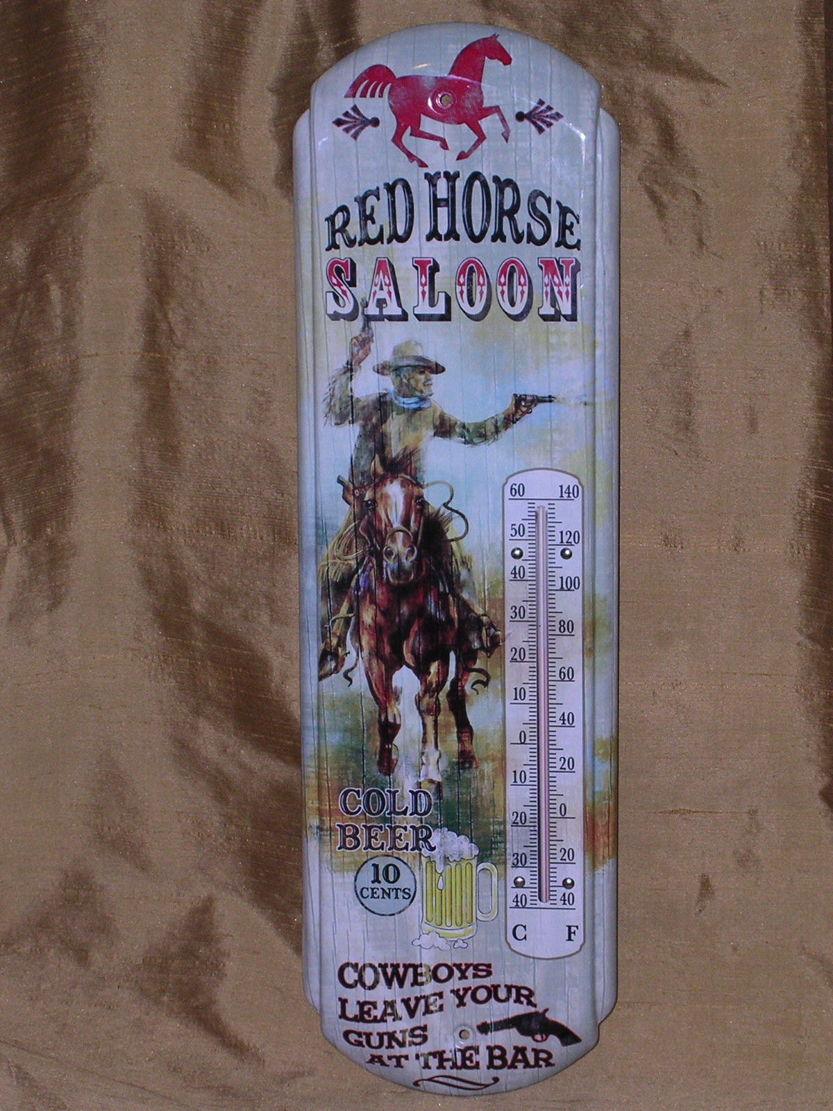VINTAGE ANTIQUE STYLE RED HORSE SALOON BAR BEER THERMOMETER TIN METAL SIGN !!!