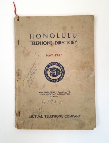 Vintage 1947 Honolulu Hawaii Telephone Directory