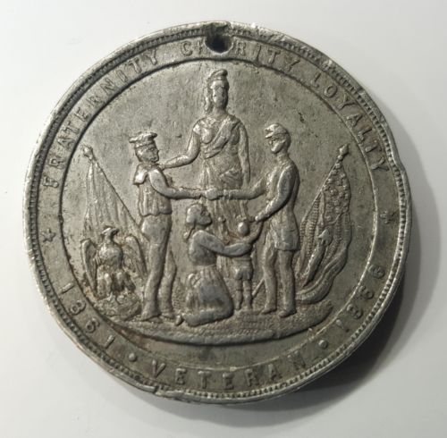 Title (ebay affiliate link): ANTIQUE CIVIL WAR GAR ENCAMPMENT BOSTON MA 1890 SAILOR FLAG KEPI EAGLE MEDAL NR