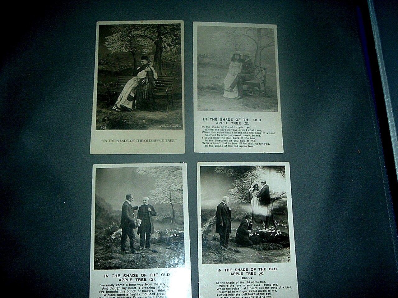 "In the Shade of the Old Apple Tree" vintage postcard series - four cards