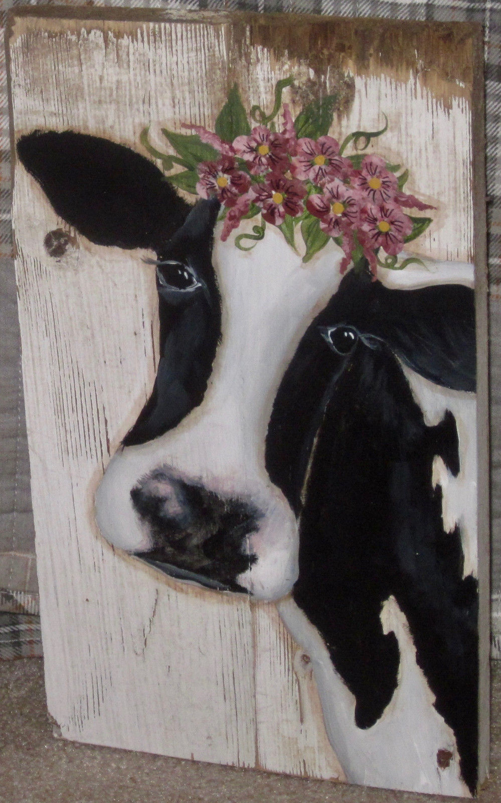 Title (ebay affiliate link): *~*PRIMITIVE*~* HP FOLK ART PRIM FARMHOUSE HOLSTEIN COW *~* OLD RECLAIMED WOOD