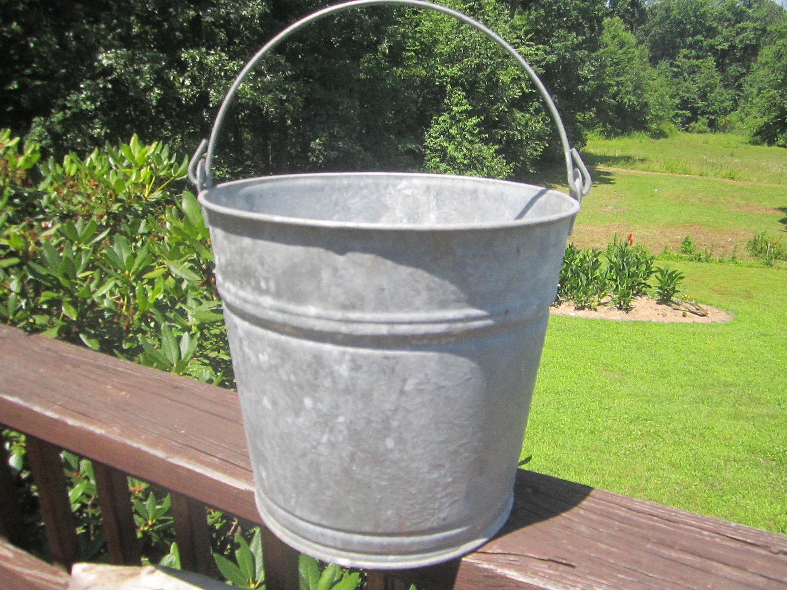 Title (ebay affiliate link): VINTAGE GALVANIZED BUCKET METAL MILK PAIL PLANTER FARM DECOR ORIGINAL