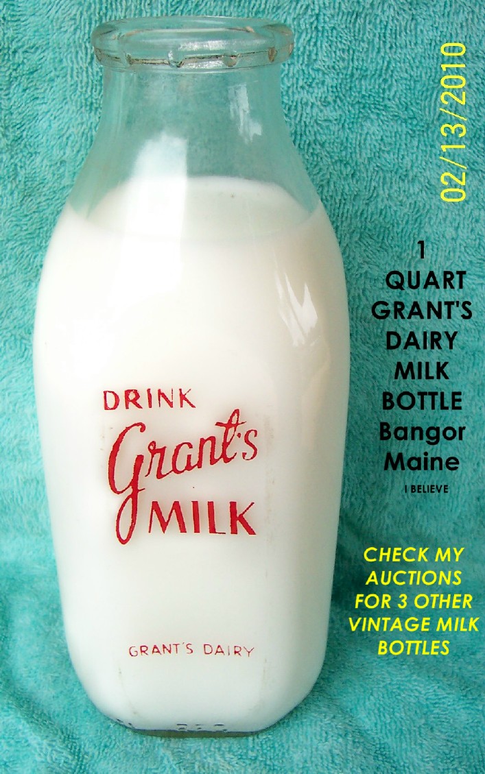 GRANTS DAIRY QUART MILK BOTTLE BANGOR MAINE ME.QT GLASS