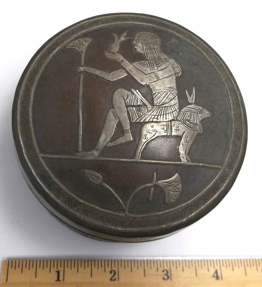 Title (ebay affiliate link): Hand Made - Silver Inlaid Eygptian Copper Tea Caddy Pyramid Camel - FREE SHIP