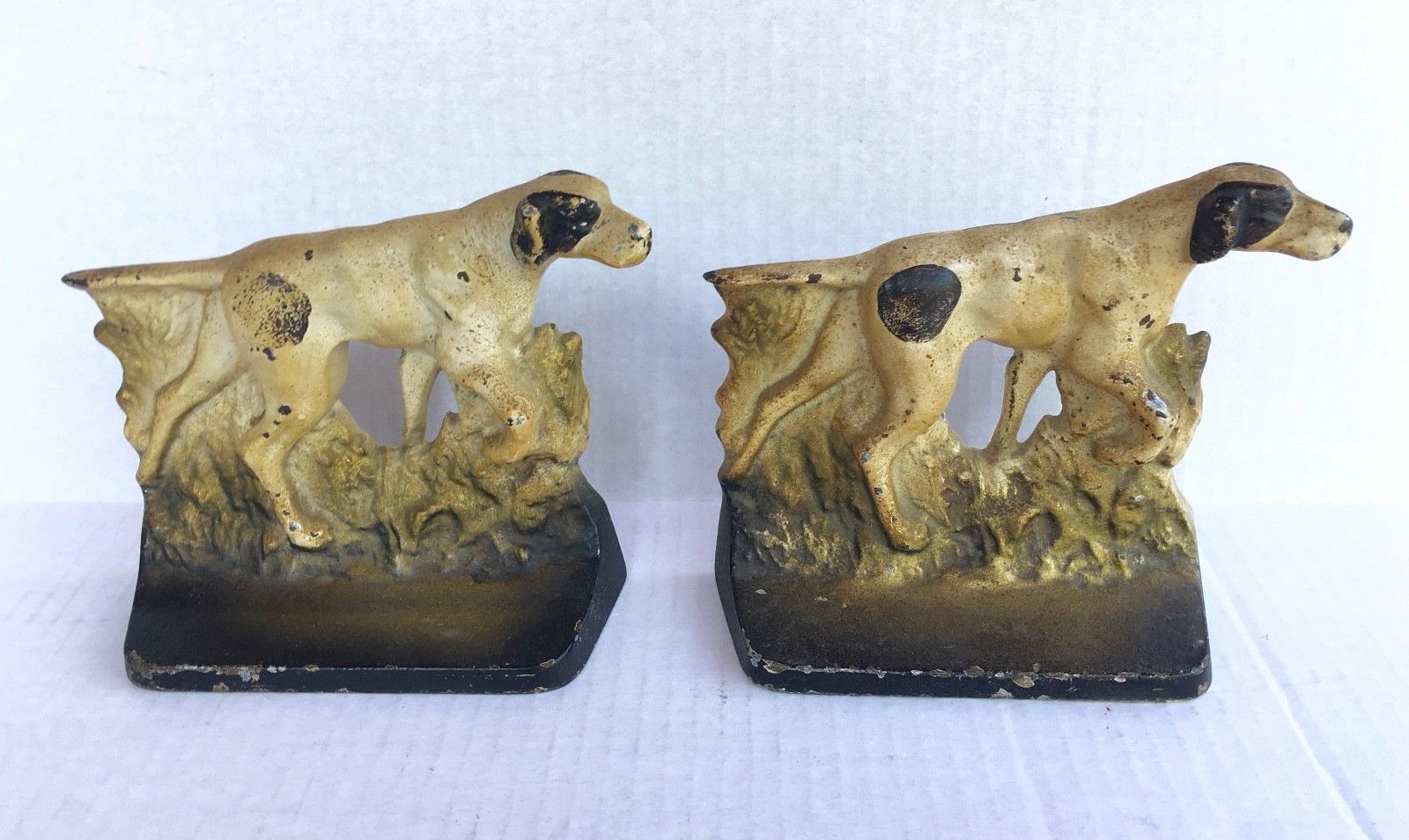 ANTIQUE CAST IRON HUNTING DOG SETTER POINTER BOOKENDS VERY GOOD