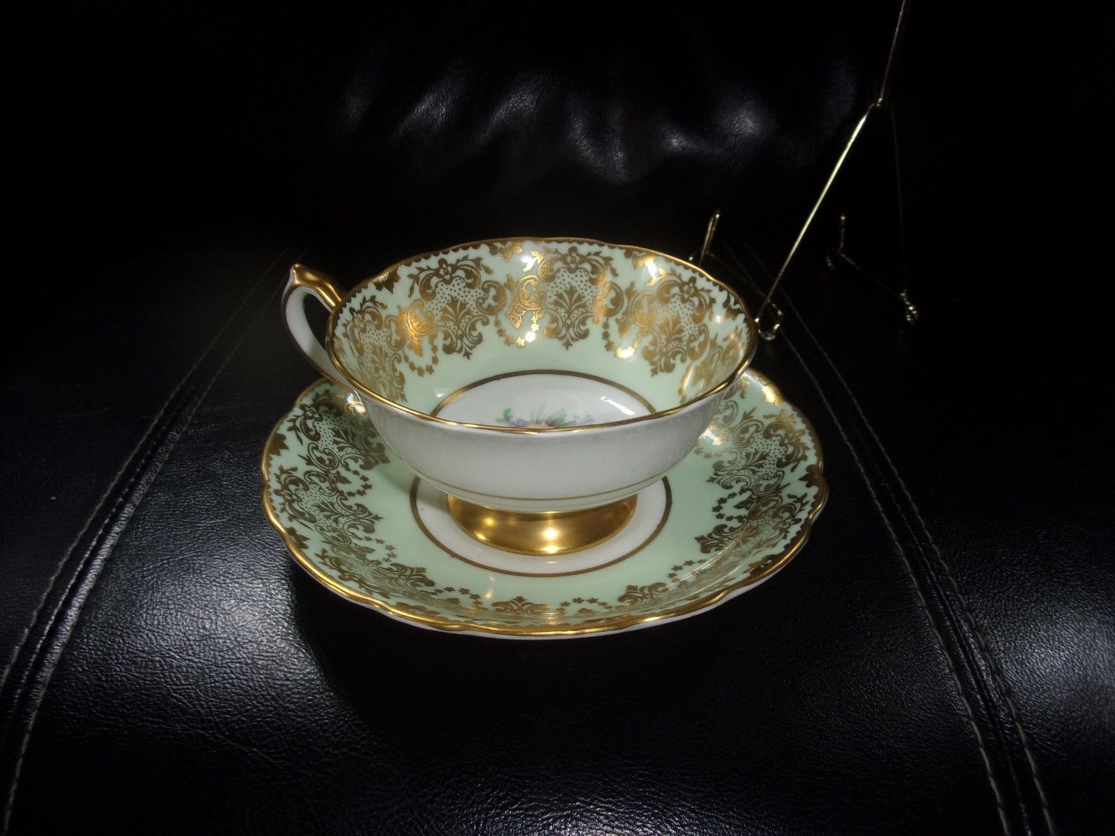 PARAGON tea cup and saucer Baby blue & pink rose pattern