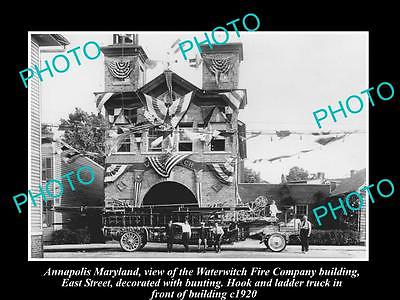 OLD LARGE HISTORIC PHOTO OF ANNAPOLIS MARYLAND, THE WATERWITCH FIRE STATION 1920