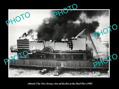 OLD LARGE HISTORIC PHOTO OF ATLANTIC CITY NEW JERSEY, FIRE AT STEEL PIER c1982