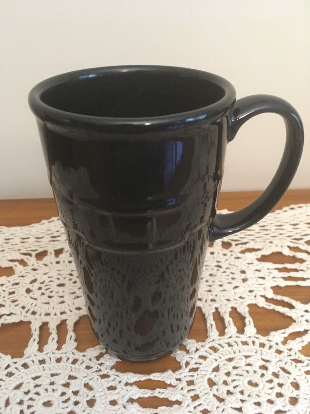 Longaberger Pottery Woven Traditions Tall Black Coffee Mug16 oz