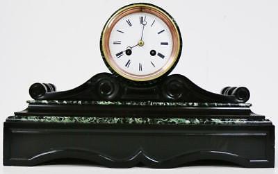 Antique French 8 Day Black Polished Slate & Marble Drum Head Mantle Clock C1860