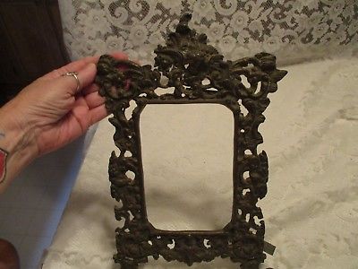 VINTAGE METAL FRAME RECTANGULAR SURROUNDED w/CHERUB & FLOWERS