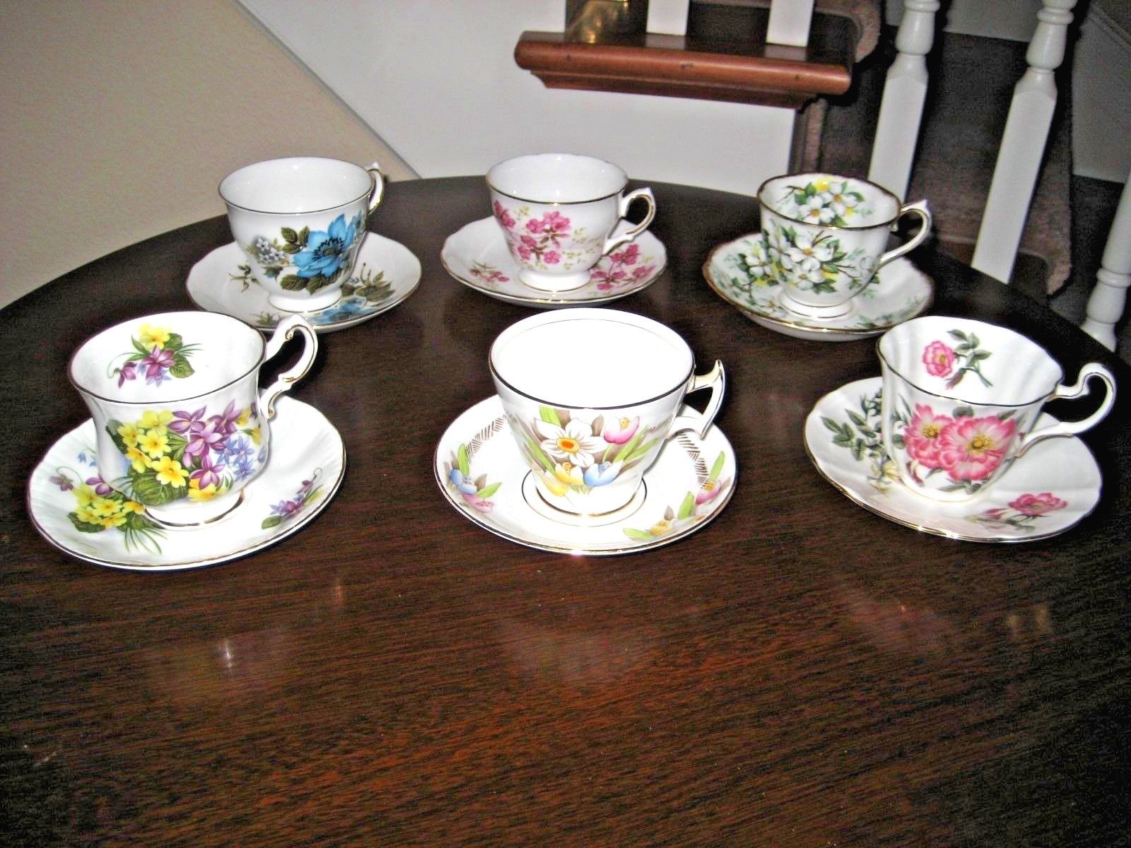 Lot of Six Floral Tea Cups and Saucers Made in England