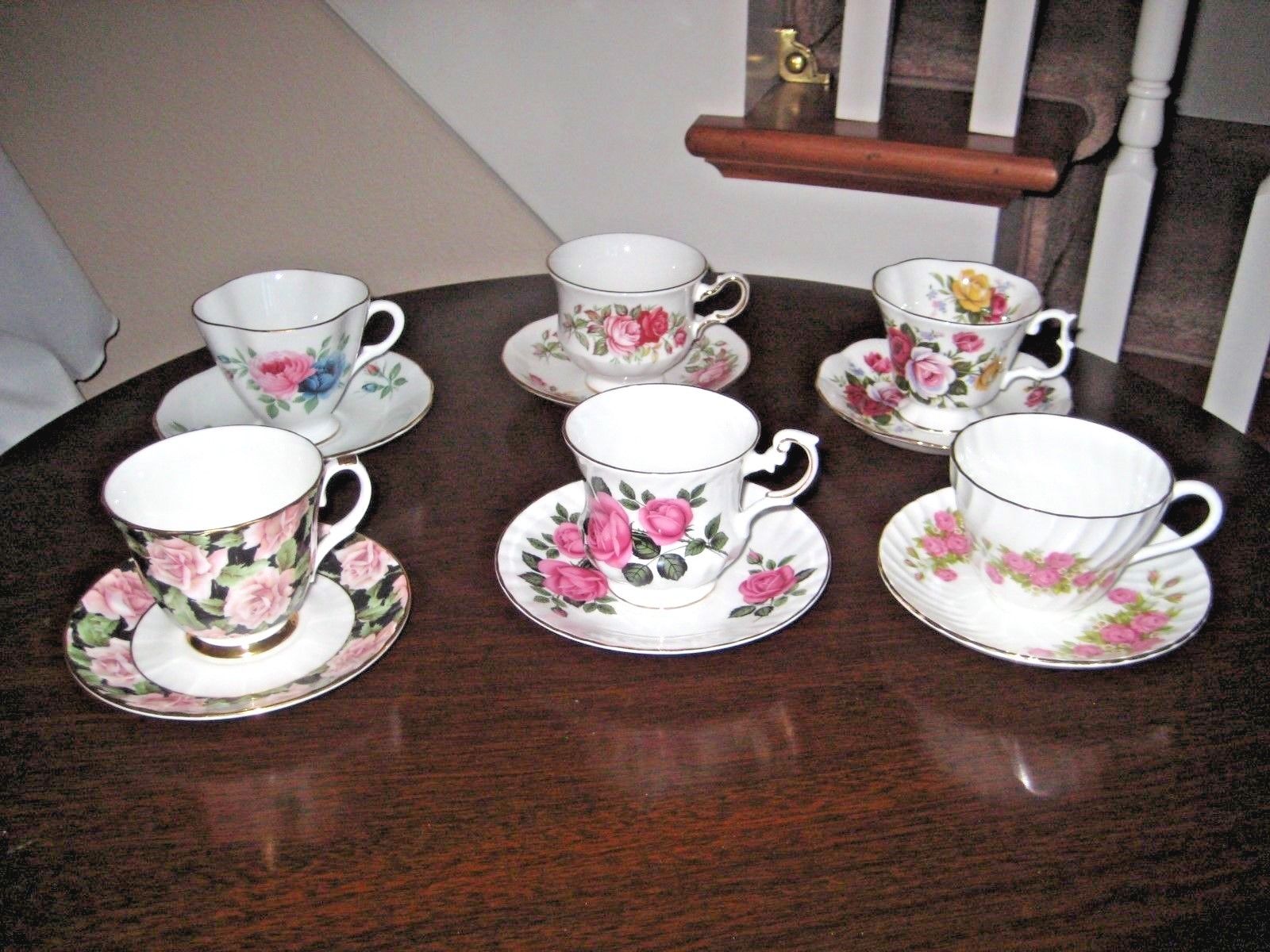 Title (ebay affiliate link): Lot of Six Different Rose Pattern Tea Cups and Saucers Made in England