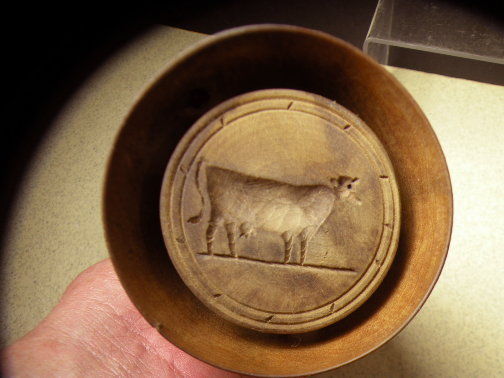 Title (ebay affiliate link): ANTIQUE CA 1880 MILKING COW CARVED WOODEN PLUNGER BUTTER MOLD 6-3/4" LOT~455