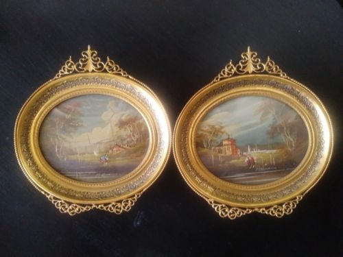 Title (ebay affiliate link): ANTIQUE VTG ITALIAN LANDSCAPE MINIATURE OIL PAINTING ON GOLD METEL VINTAGE FRAME