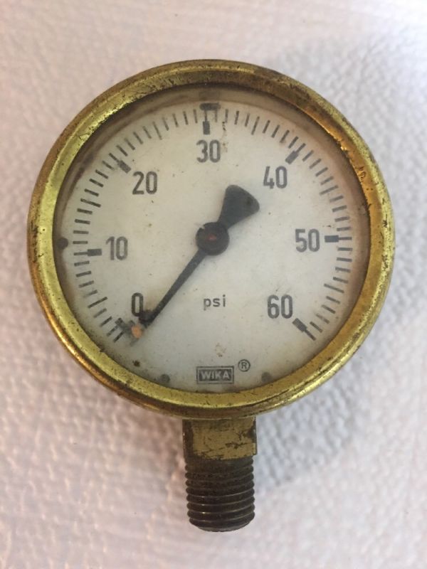 Vintage Brass Steampunk Pressure Gauge 60 psi 2-1/2" inch face 1-1/2" deep WIKA
