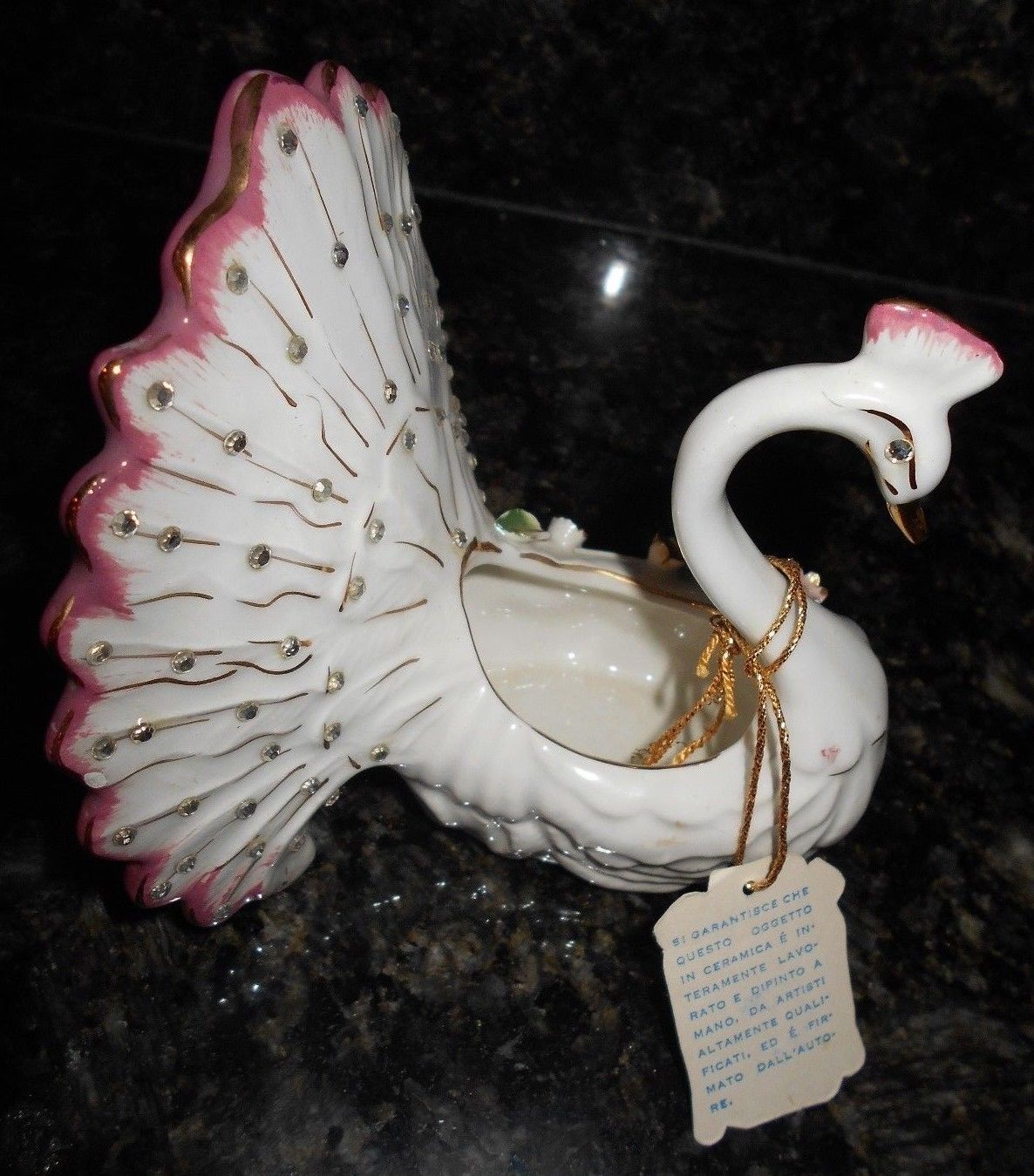 Title (ebay affiliate link): Italy Capodimonte Porcelian Peacock Figurine Gold Trim 4" x 4" Trinket Signed
