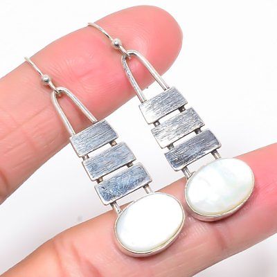 Title (ebay affiliate link): Matte Finish Handmade Silver Antique Look Mother Of Pearl Earring 1.97"(29)_Iv