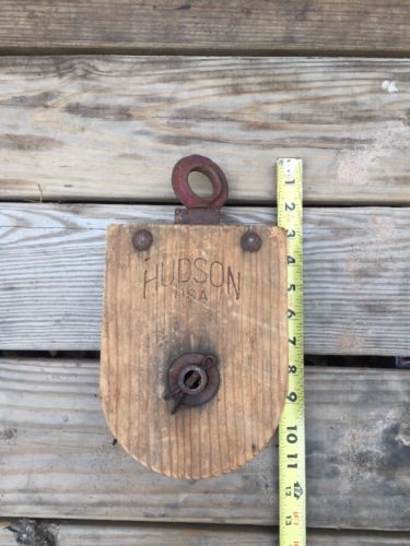 Title (ebay affiliate link): VINTAGE Hudson Wood BLOCK & TACKLE PULLEY Farm Boat Pulley