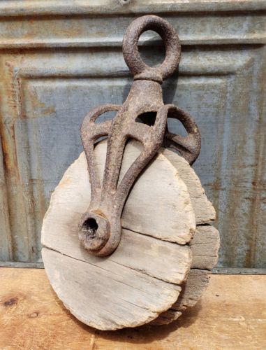 Title (ebay affiliate link): Antique Cast Iron Drop Pulley Hay Trolley Rustic Farm Barn Salvage Block Tackle