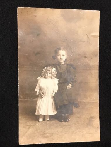 Little GIRL w HAIR BOW & Blonde Germany Dolly DOLL ANTIQUE REAL PHOTO POSTCARD