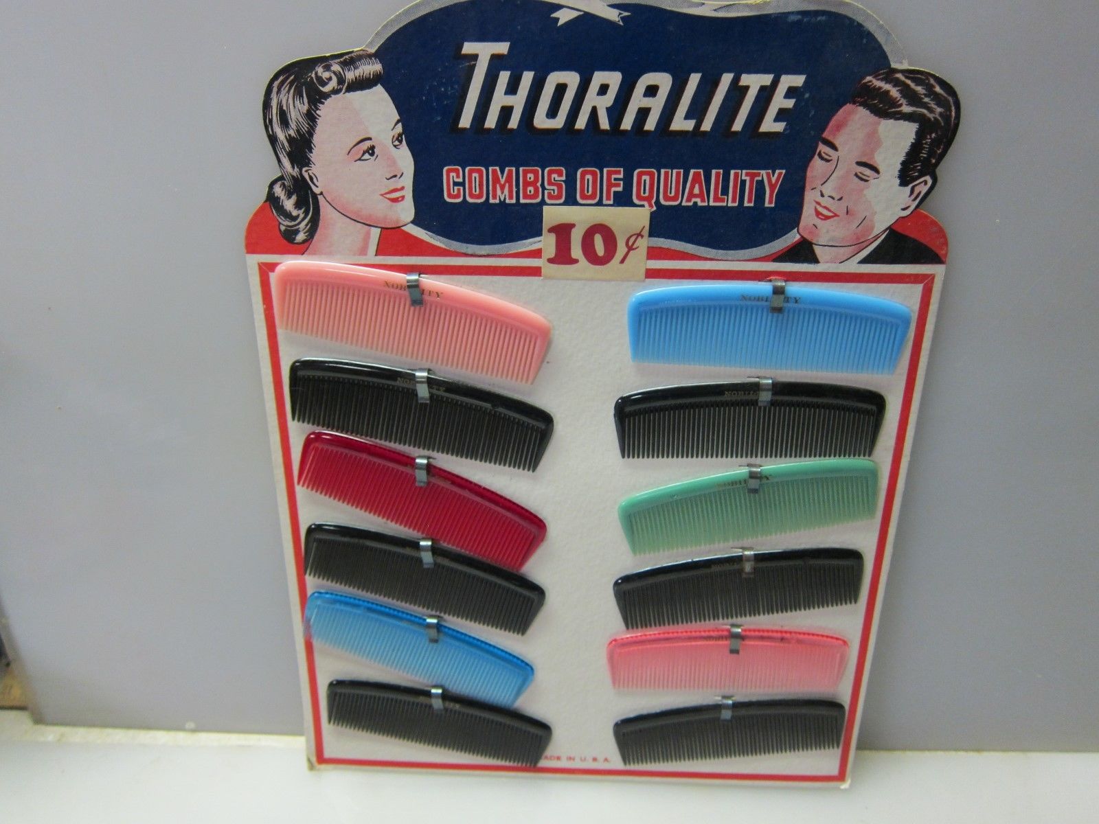 VINTAGE THORALITE STAND UP STORE DISPLAY SIGN POCKET COMBS