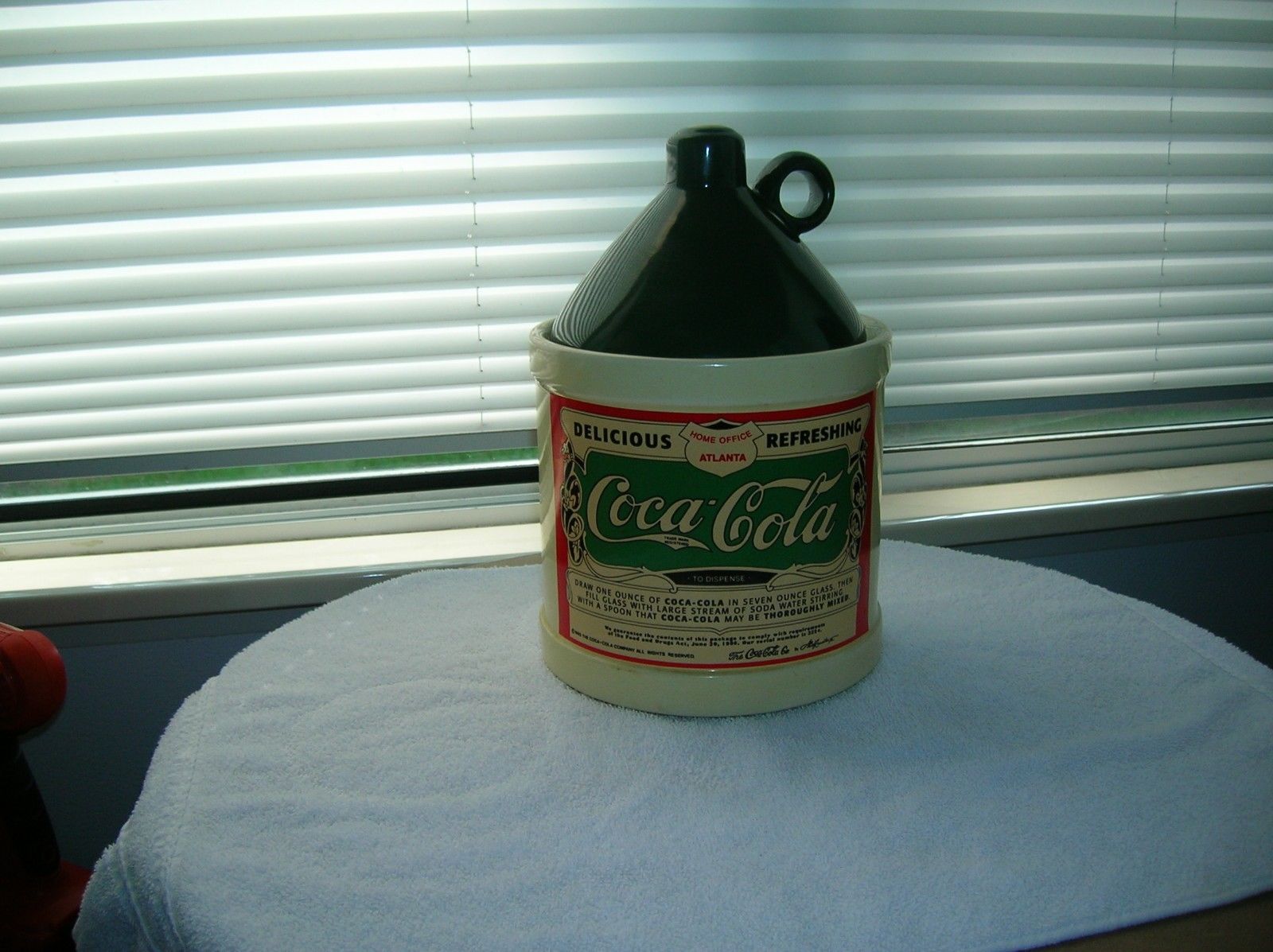 Vintage Coca-Cola Cookie Jar shaped like a Whiskey Jug 10" tall