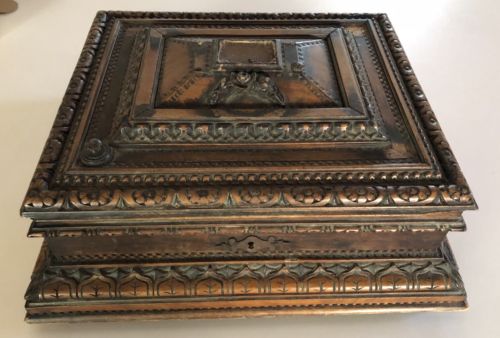 Antique Carved Wood Sewing Jewelry Box Mini-chest Kit