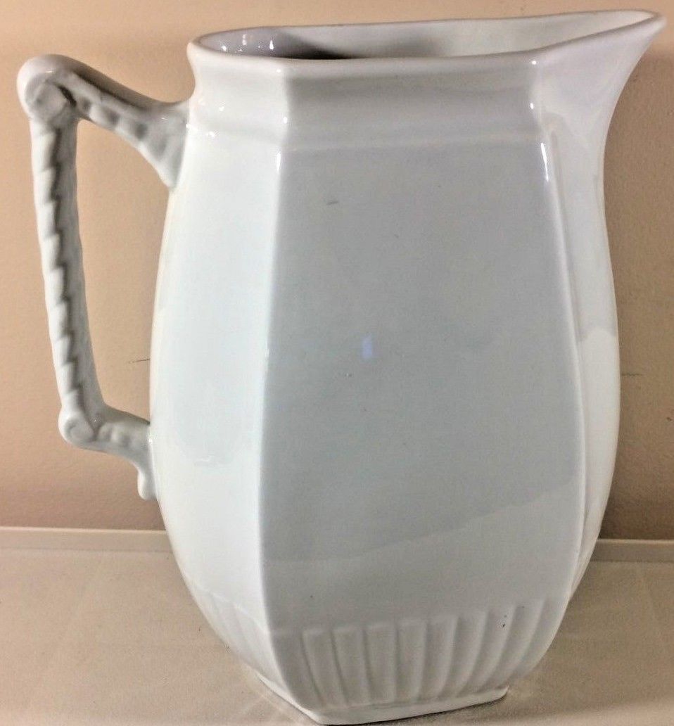 Antique White Ironstone 10 1/2"Tall Pitcher W H Grindley , England , Unique Form