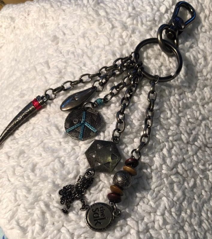 Title (ebay affiliate link): THE SAK Antique Brass Split Key Ring 5 Charms Dog Leash Clip 4 Purse Key Chain__