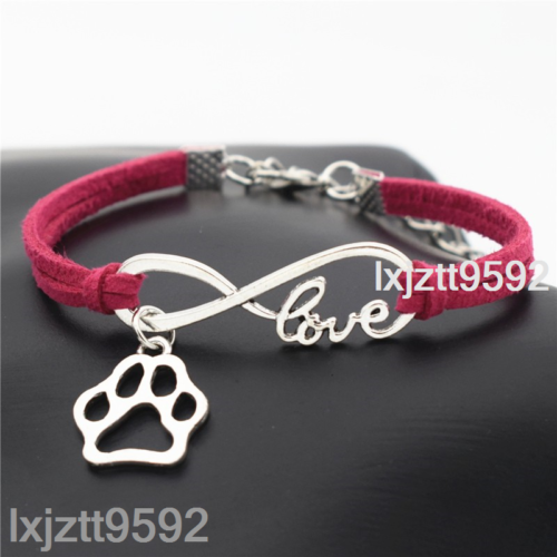 Women Stylish Antique Silver Pets Lover Animal Paw Charms Pendant Bracelet #570