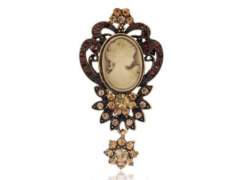 Title (ebay affiliate link): Vintage Rhinestone Flower Fashion Yellow Beauty Antique Queen Cameo Brooch Pins