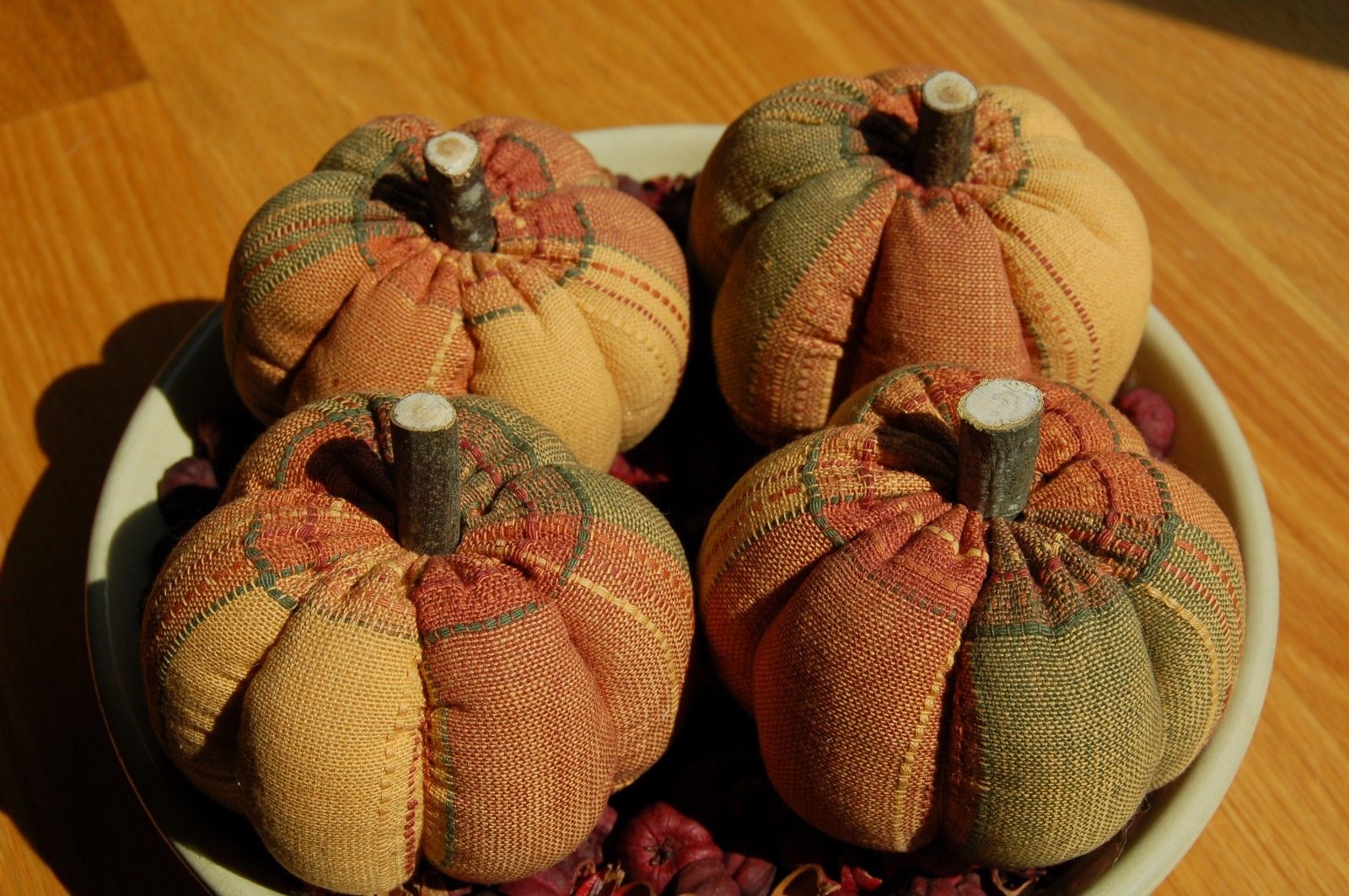 Title (ebay affiliate link): Primitive Fall Thanksgiving, Fall Multicolor Homespun Pumpkin Ornies, 4