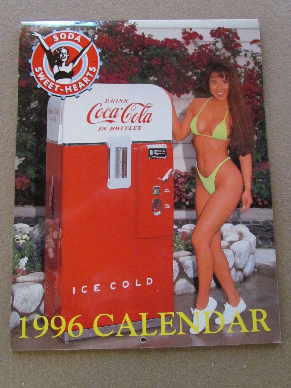 Title (ebay affiliate link): 1996 Coca Cola Calendar with a new Soda Machine and Sweet-Heart each month.