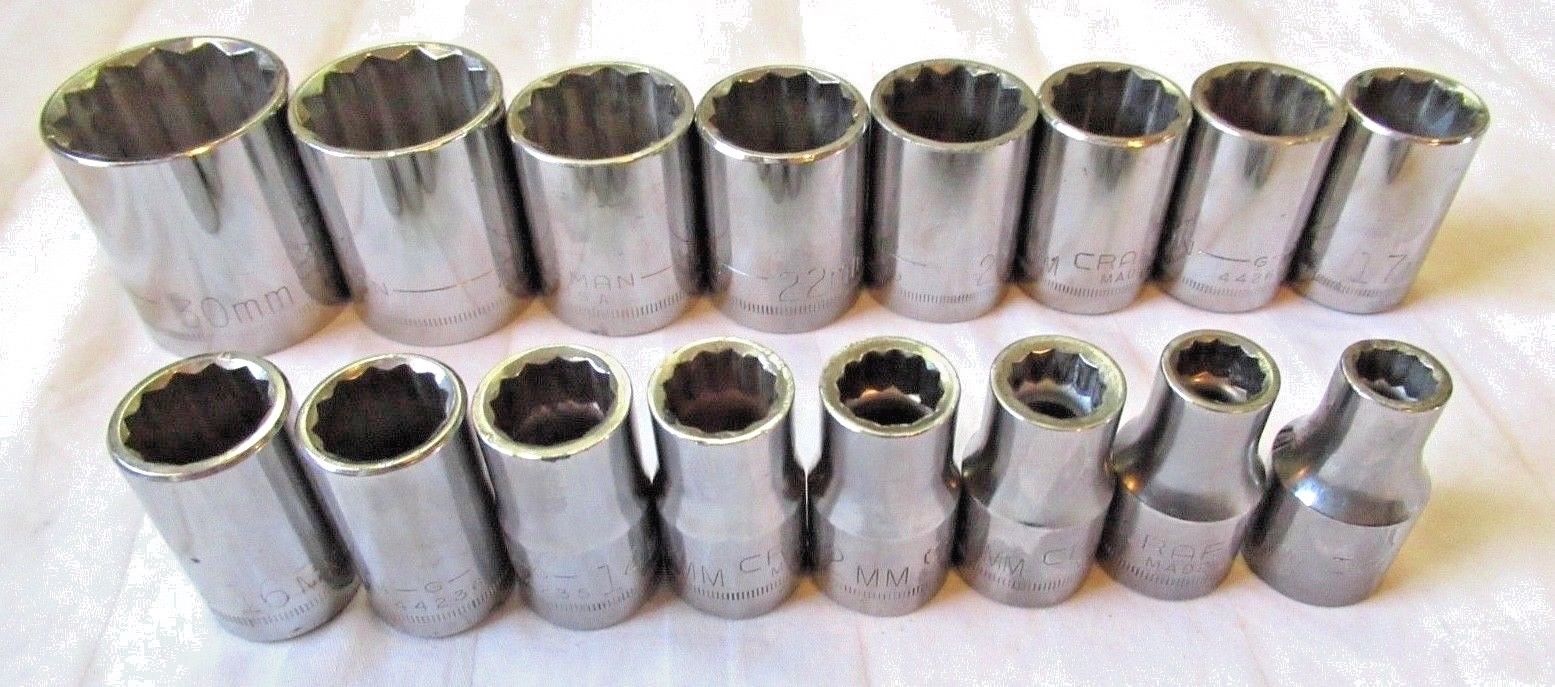 Title (ebay affiliate link): Craftsman U.S.A. Set of (16) 1/2" Drive Metric 12 Pt. G Series Sockets
