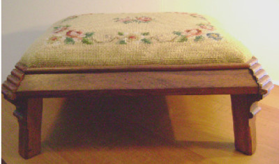 Title (ebay affiliate link): BEAUTIFUL ANTIQUE FOOTSTOOL W/ ROSE NEDDLE POINT COVER