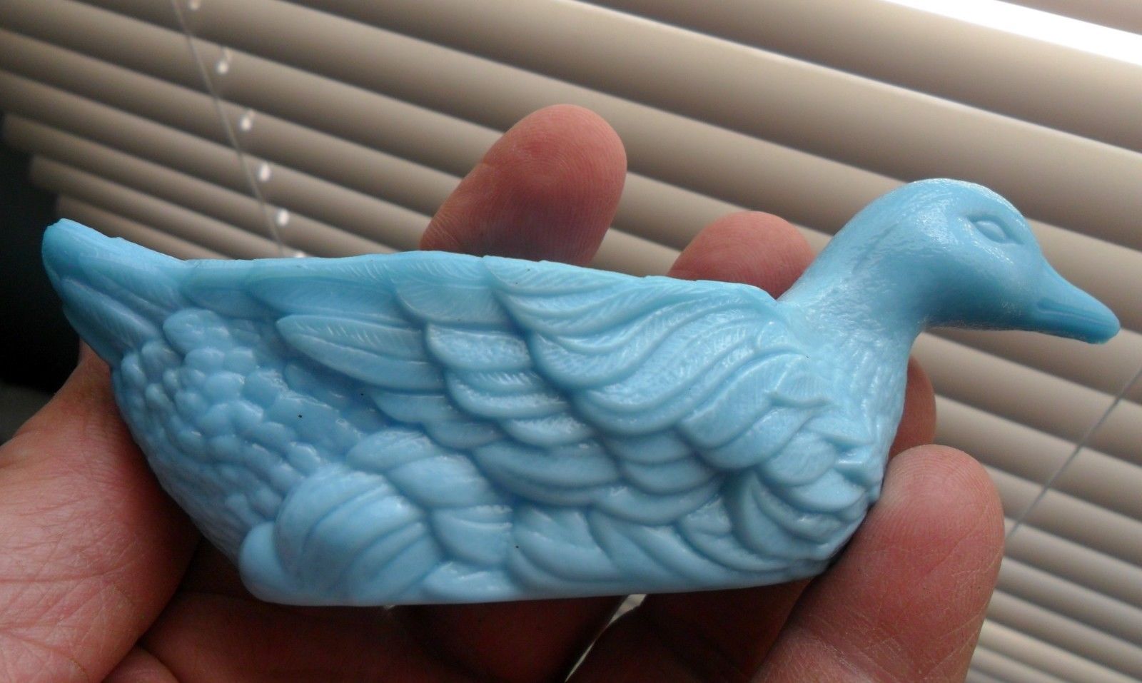 DUCK Open salt Portieux / VALLERYSTHAL French or EAPG? Opaque Blue / Milkglass