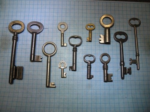 Title (ebay affiliate link): LOT OF 12 ANTIQUE SKELETON, FURNITURE, BARREL, CABINET AND OLD LOCK KEYS