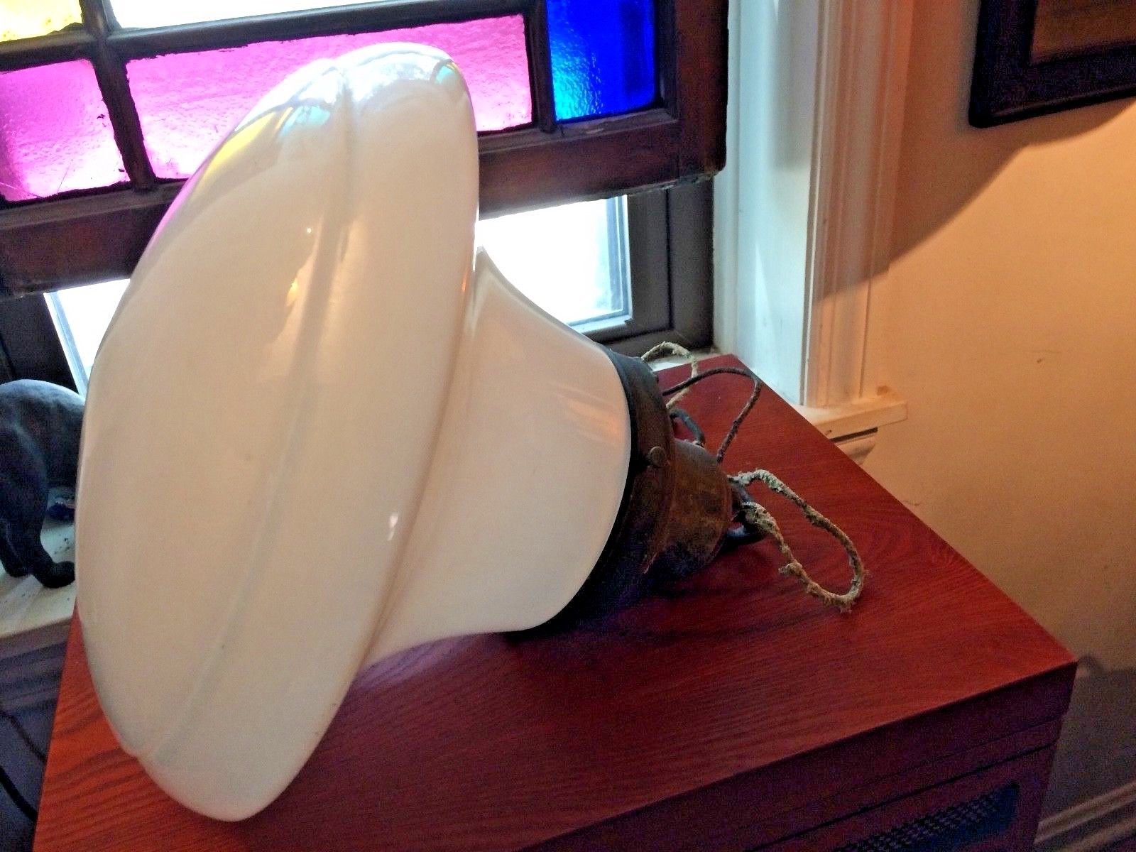 Title (ebay affiliate link): Antique Vintage Schoolhouse Light Fixture Flush Mount 11" Milk Glass Shade 1920s