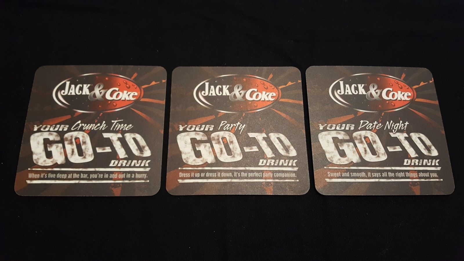 3 Different Jack Daniels Tennessee Whiskey Coca Cola Beer Coasters Beermats