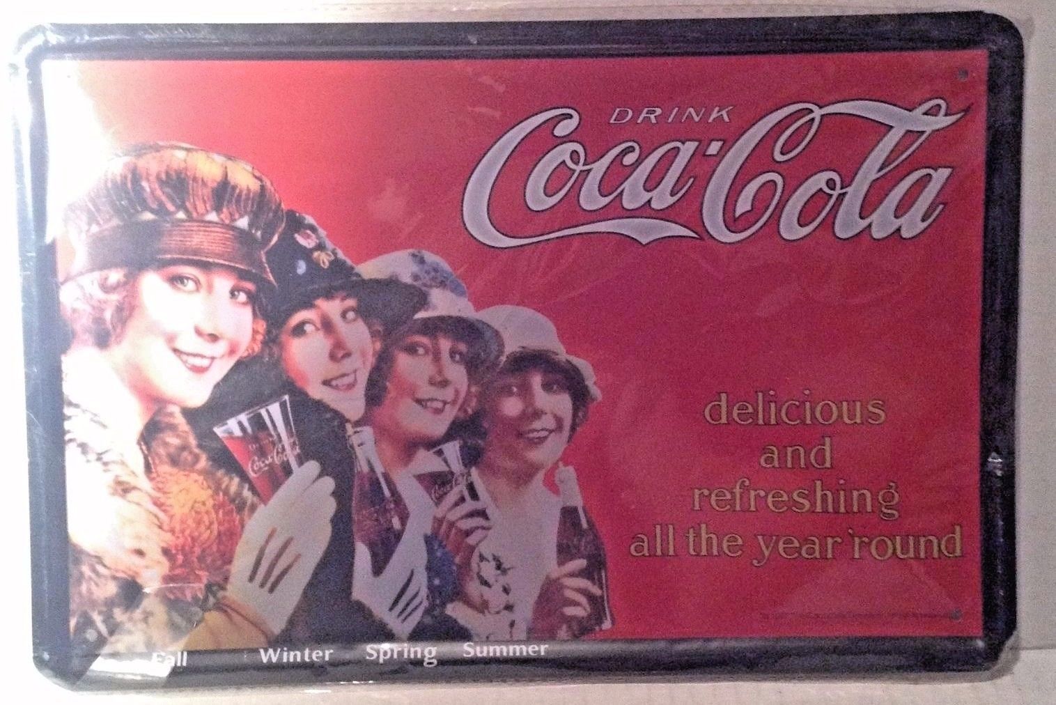 Coca-Cola "Fall-Winter-Spring-Summer"old vintage Look Tin Sign 11 1/2" x 7 1/2"