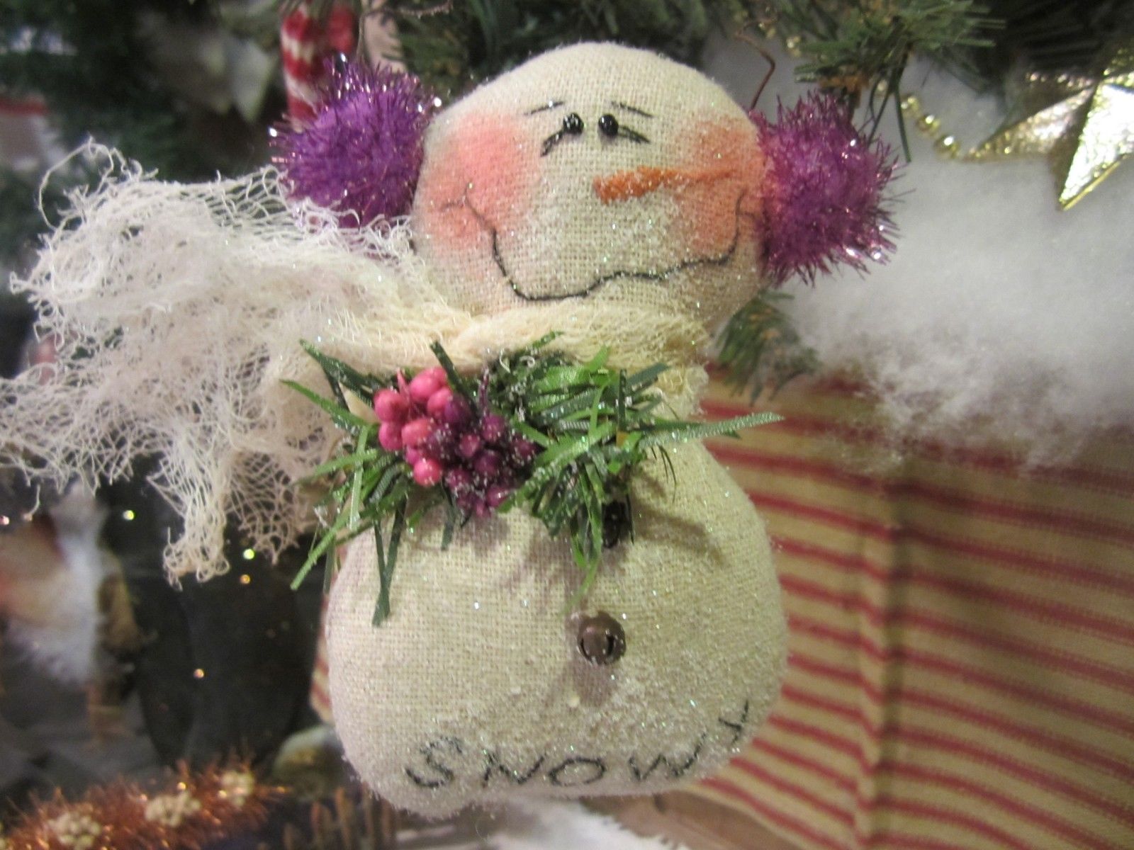 Title (ebay affiliate link): Primitive Snowy the Snowman - Purple Earmuffs - Ornie or Bowl Filler #1680