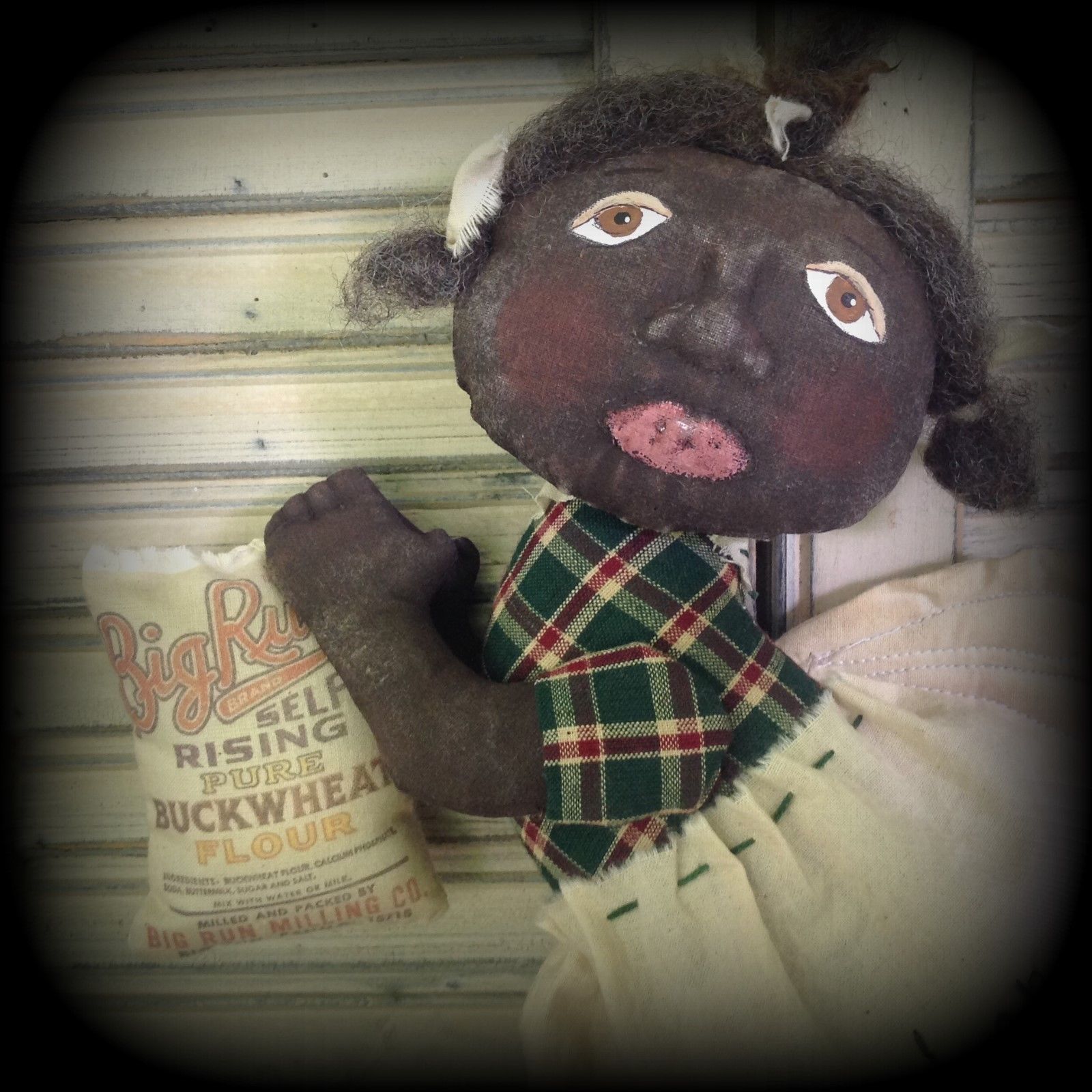 Title (ebay affiliate link): Artist made Primitive FOLK ART Black Kitchen ANGEL DOLL "Maisy" Handmade Mammy