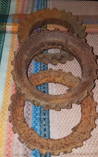 Title (ebay affiliate link): 8 OLD RUSTIC PRIMITIVE CAST IRON CORN PLANTER SEED PLATES~STEAM PUNK~GEAR ART!