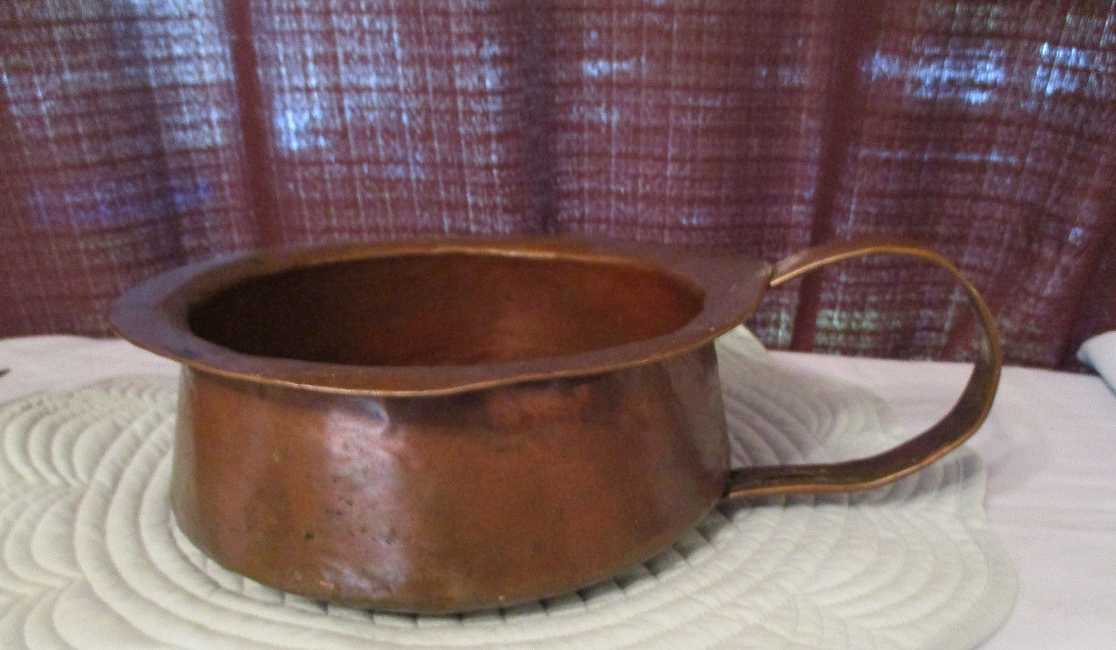 Title (ebay affiliate link): ANTIQUE PRIMITIVE HAND FORGED COPPER SQUAT POT