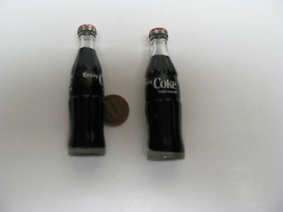 COCA-COLA COKE 2 MINIATURE GLASS BOTTLES SODA POP COLLECTIBLE TOY BEVERAGE