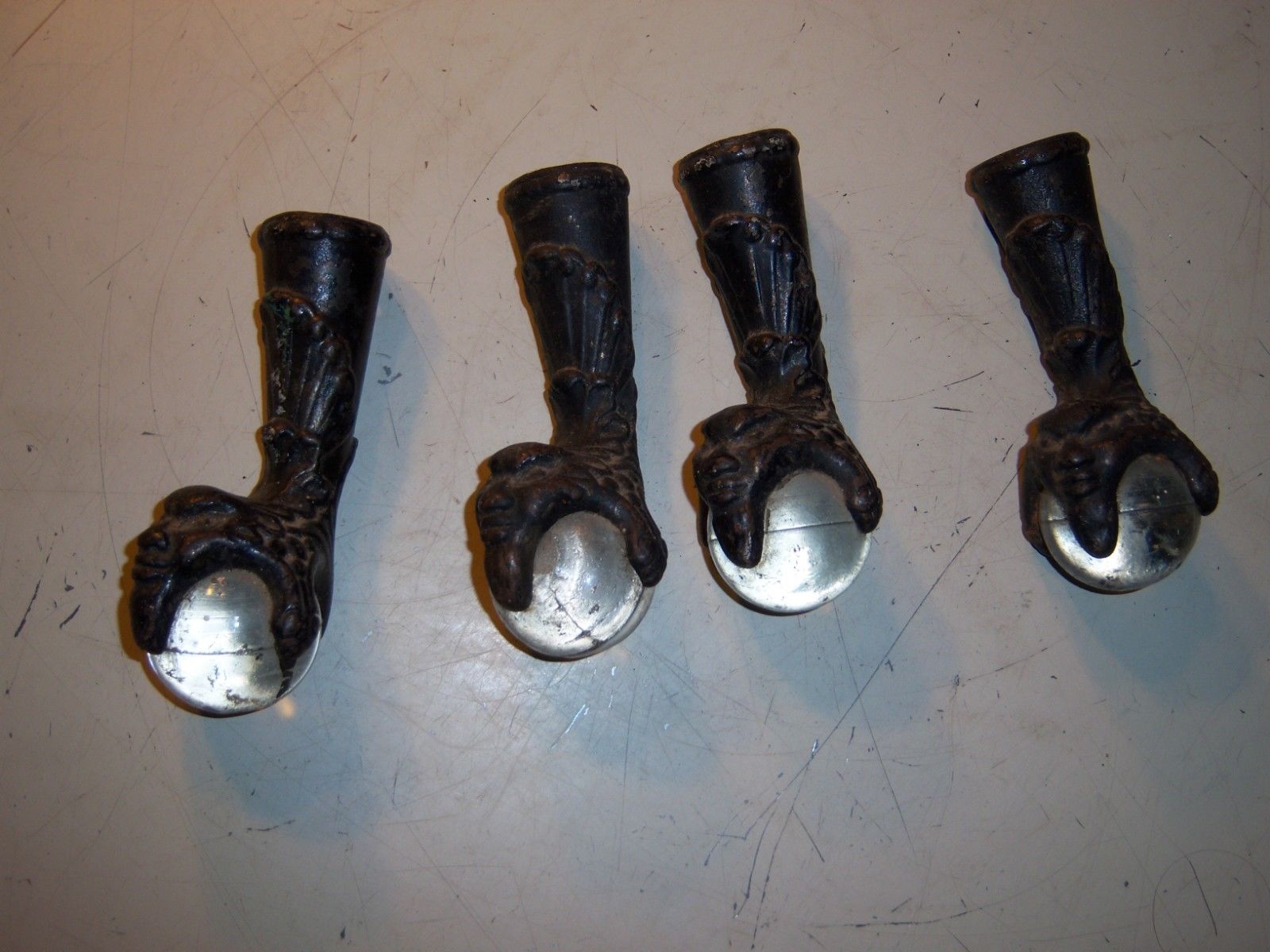 4 Vintage Cast Iron Claw Feet with Glass Balls
